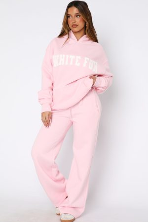 The Shout It Out Wide Leg Sweatpants in Moon is your go-to-piece for effortless style. Features a thick elasticated waistband. lining. two side pockets. denim logo back centre. high rise fit and wide leg design. Team with the matching Shout It Out Oversized Hoodie in pink.