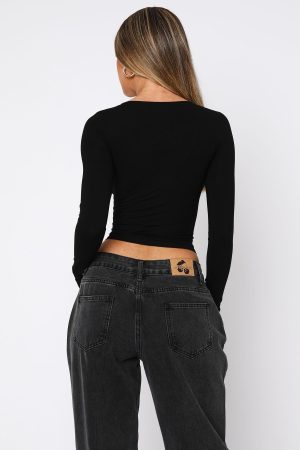 Versatile and chic. the Show You The World Long Sleeve Top Black features long sleeves. a fitted style and soft. stretch fabric for an easy pull over style. Team with any White Fox lounge pants for the perfect slow Sunday morning fit’!