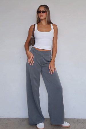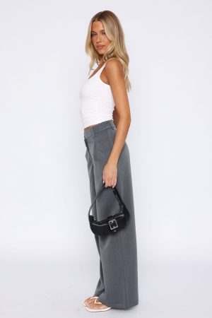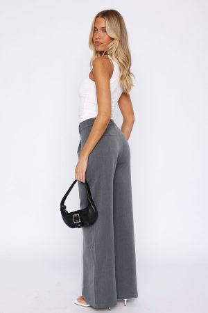 Meet you next go-to pants the Silver Linings Pants in Grey! Features off centre thick waistband with clasp and zipper closure. belt buckle holes. faux pockets centre back and wide leg design for a more relaxed look. Complete the look with a white tank and your favourite sneakers!