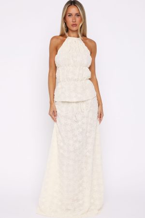 Santa i can explain…i needed the Slay Today Halter Top in Cream! Feature a halter neckline with spaghetti straps. a high-neck profile. layered ruched detailing down the bodice. a backless design with double self-tie straps. and is fully lined for that flawless finish. Style with the matching Slay Today Maxi Skirt Cream and heels for the perfect xmas lunch fit.