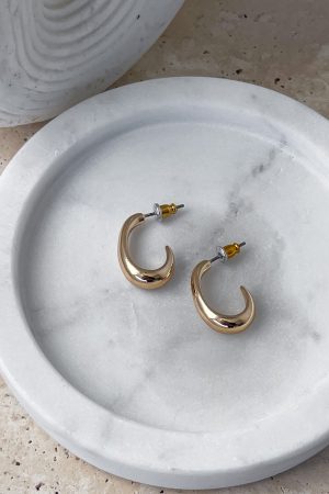An absolute essential for any statement earring lover! These gorgeous Sloane Earrings Gold feature a gold plated hardware. push-back closure and high shine! Dressing up your everyday outfits they offer a minimalistic. chic moment.