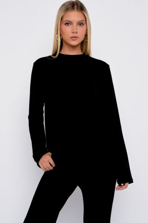 Self care nights have n ever looked better! The Slow Life Long Sleeve Pyjama Top in Black features a classic crew neckline. slouched shoulders. long sleeves and relaxed silhouette for all night comfort. Style with the matching Slow Life Pyjama Pants in Black.