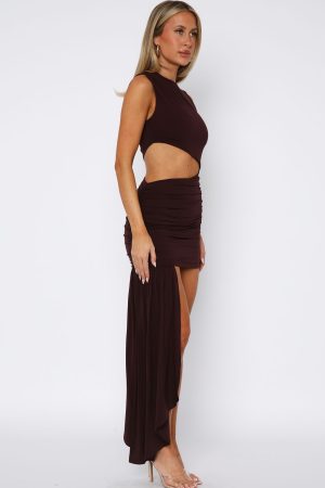 Feeling cheeky put our Smiling At You Mini Dress in Plum! Features a feminine jewel neckline. asymmetrical cut out design on waist. ruched detailing on mini skirt and attached sash elegantly falling on side. Let the dress do all the talking and pair with clear mules and simplistic jewellery!