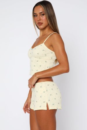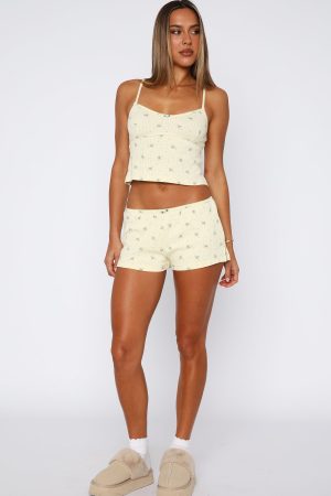 Slip into dreamland with our Snuggle Season Pyjama Shorts Lemon Floral! Featuring a thin. elasticated waistband. unlined material. side split detailing and the cutest printed material. Pair with the matching Snuggle Season Pyjama Top Lemon Floral!