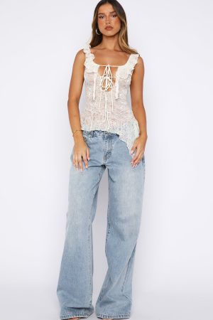 Our So Iconic Lace Top Off White is designed to make an impact on summer vacation escapes. Features an elasticated off-the-shoulder neckline adorned with delicate lace trim. and keyhole cutout at the center front. complemented by a self-tie bow and lace sash. The fitted bodice is finished off with a asymmetrical hemline and lined sheer lace fabrication. Style with denim jeans. sandals and layered gold jewellery for a look we love.