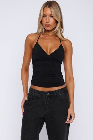 Who wouldn’t be tempted in the So Tempting Halter Top in Black! Features halter neck self tie thin straps. v-neckline. cross over fabrication on bust and backless. Pair with your favourite White Fox capri or jeans for a more transitional look!