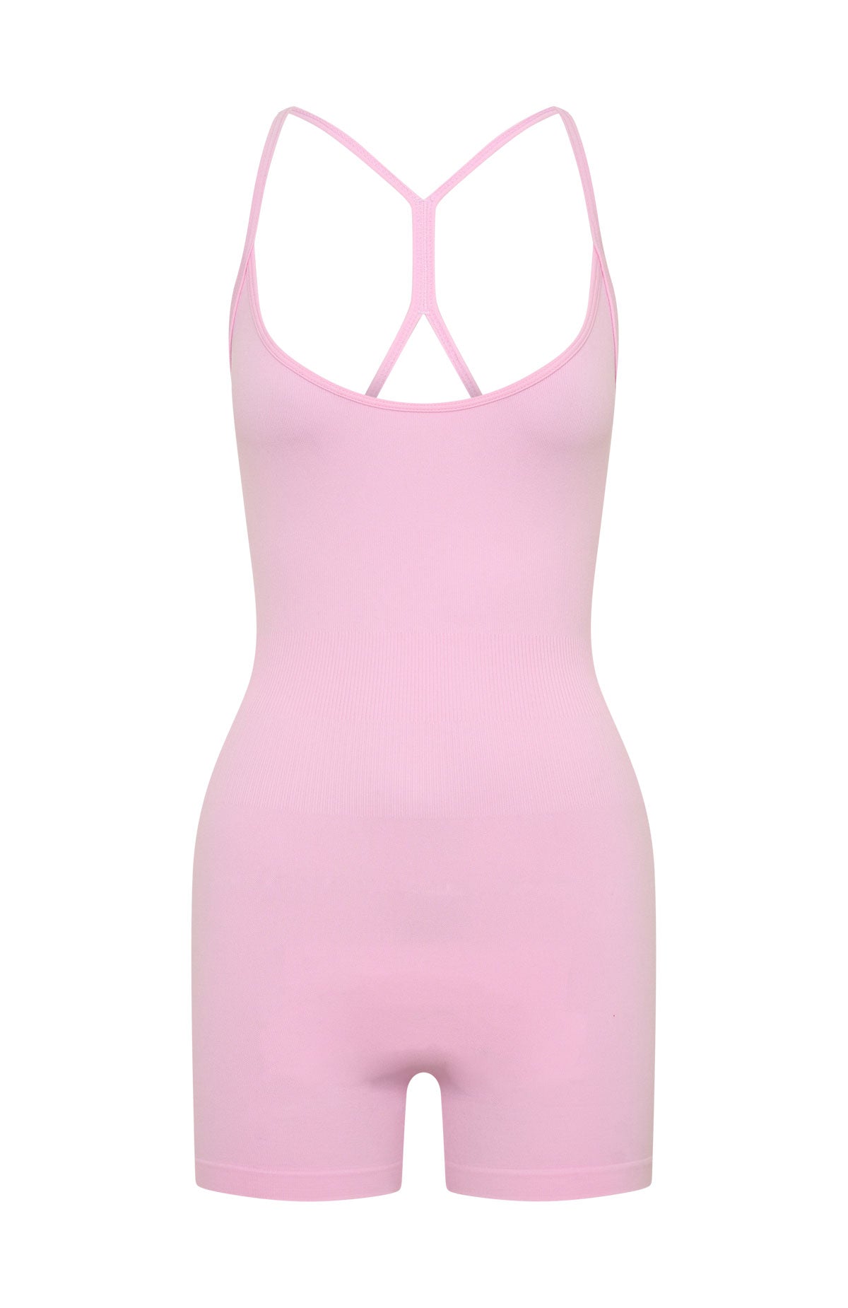 Progress looks good on you in the Soar Seamless Playsuit in Marshmallow. It features thin elastic straps. a racerback. a ribbed waist. high‑stretch seamless fabrication. an unlined design. and printed WFA initials at the center back. Style with Gone Away Boxy Zip Front Hoodie and your fave sneakers.