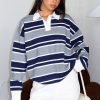 Trending Stripes! The Soft Rewind Knit Sweater in Honeycomb Choc Stripe features a ribbed collar with a button placket. relaxed slouched shoulders. and long sleeves with ribbed cuffs and hem. The high-stretch knit fabrication creates an easy. unlined silhouette that’s comfy yet stylish. Pair it with shorts and sneakers for an effortless weekend look.