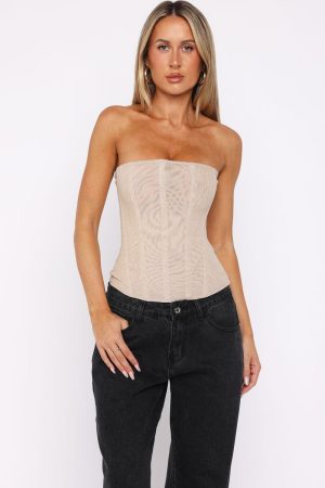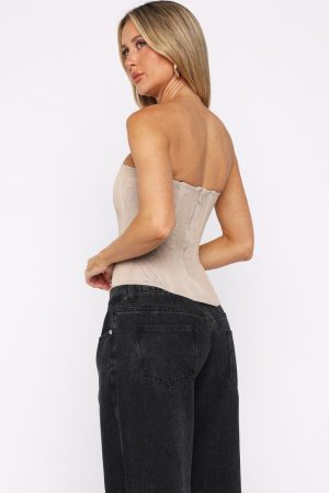 Make a dazzling entrance in the Spotlight On Me Strapless Bustier Champagne Glitter! Featuring a strapless neckline. structured internal boning for sculpted support. ultra‑shimmer fabrication. fully lined for comfort. and a sleek invisible back zipper with hook‑and‑eye closure for a perfect finish. Style it with our matching mini Shorts. heels and layered gold jewellery to light up the dancefloor.