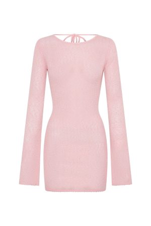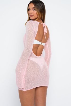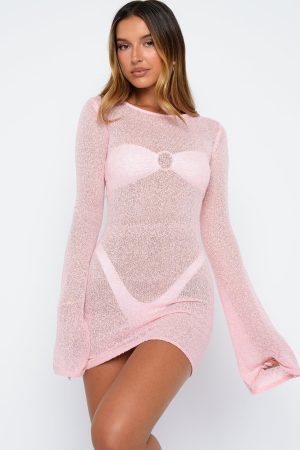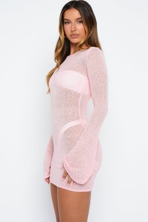 Stand And Stare Long Sleeve Mini Dress Blush Pink