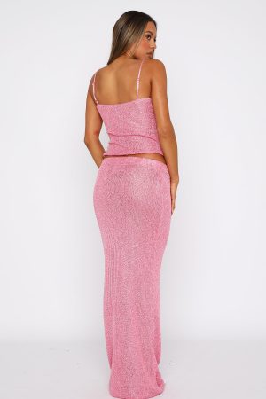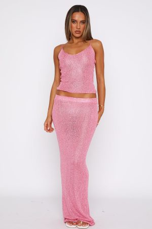 Shine all night long in the Star Shining Sequin Maxi Skirt in Bubblegum. This knitted maxi skirt features a high. elasticated waistband and sequin embellishment. Complete the look with the matching Love Galore Sequin Top and perspex heels for a look that will have heads turning!