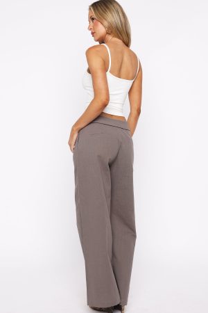 oh. this old thing? The Starlight Riot Low Rise Pants Mocha features fold-over waist and secure button. zipper and hook and bar closure. With their wide-leg cut. low-rise fit. and faux back pockets. they strike the perfect balance between relaxed and stylish. Pair with a basic tank. kitten heels and layered gold jewellery for an elevated chill look.