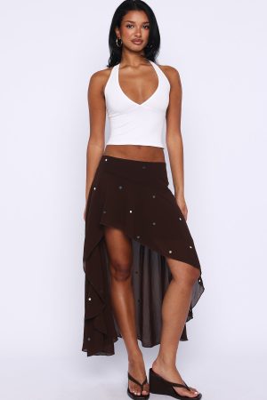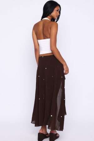 Starry Eyed Sequin Midi Skirt Chocolate