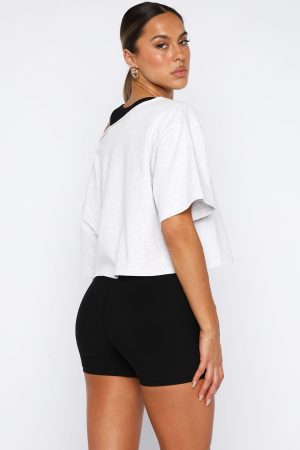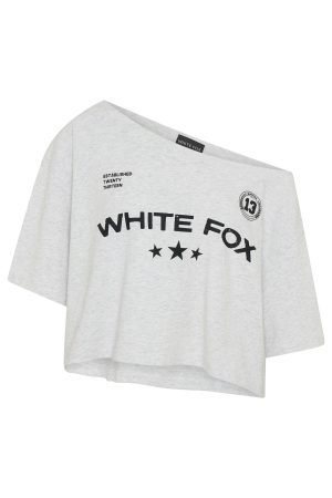Move with ease and comfort in our Stay Clear Off Shoulder Cropped Tee Grey Marle! Featuring an oversized fit. off the shoulder design. unlined material and centre front print logo design. Pair over your favourite White Fox Active crop and leggings for the ultimate vibe!