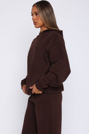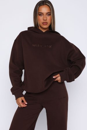 Hoodie Season is EVERY season. The Stay Lifted Oversized Hoodie in Bitter Chocolate is an oversized fit and features elasticated ribbed cuffs & hem. hood. soft fleeced fabric for extra comfort and logo middle front and centre back. Pair with the Stay Lifted Wide Leg Sweatpants Bitter Chocolate!