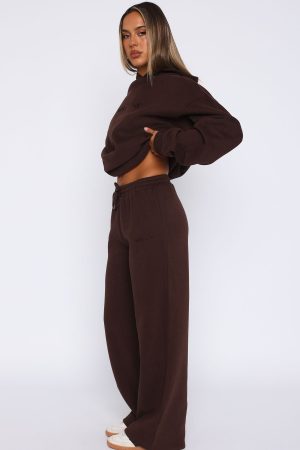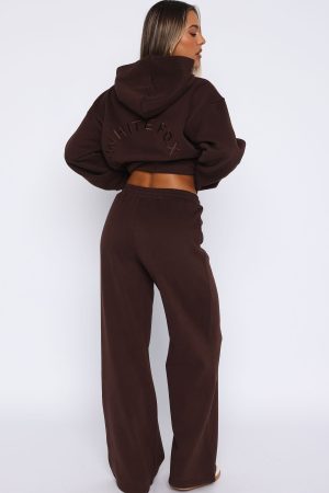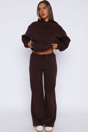 Lounge season is EVERY season. The Stay Lifted Wide Leg Sweatpants Bitter Chocolate feature a high elasticated drawstring waistband. wide leg design. and soft fleece fabric for extra comfort. Pair with the Stay Lifted Oversized Hoodie in Bitter Chocolate!