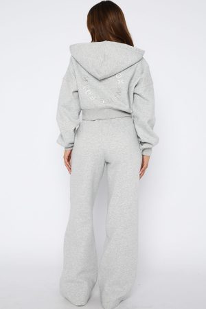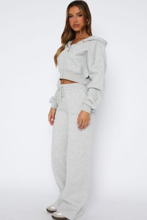 Lounge season is EVERY season. The Stay Lifted Wide Leg Sweatpants in Dark Grey Marle feature a high elasticated drawstring waistband. wide leg design. White Fox text side front and soft fleece fabric for extra comfort. Pair with the Stay Lifted cropped Hoodie in Dark Grey Marle for a look we love!