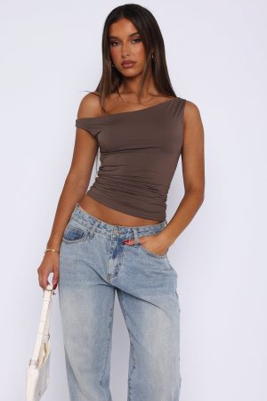 Ruched detailing is our favourite trend right now. The Stay With You Top Chocolate features a one shoulder design. ruched side design. slinky and soft fabric made to slip on with ease. The Stay With You Top in Wine is an elevated basic your wardrobe is calling out for!