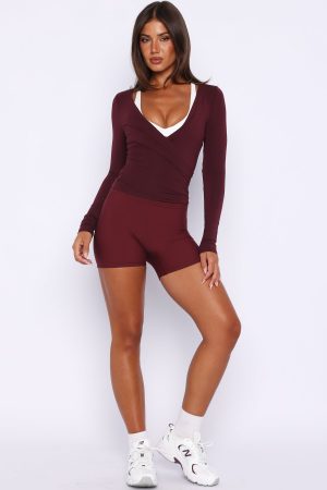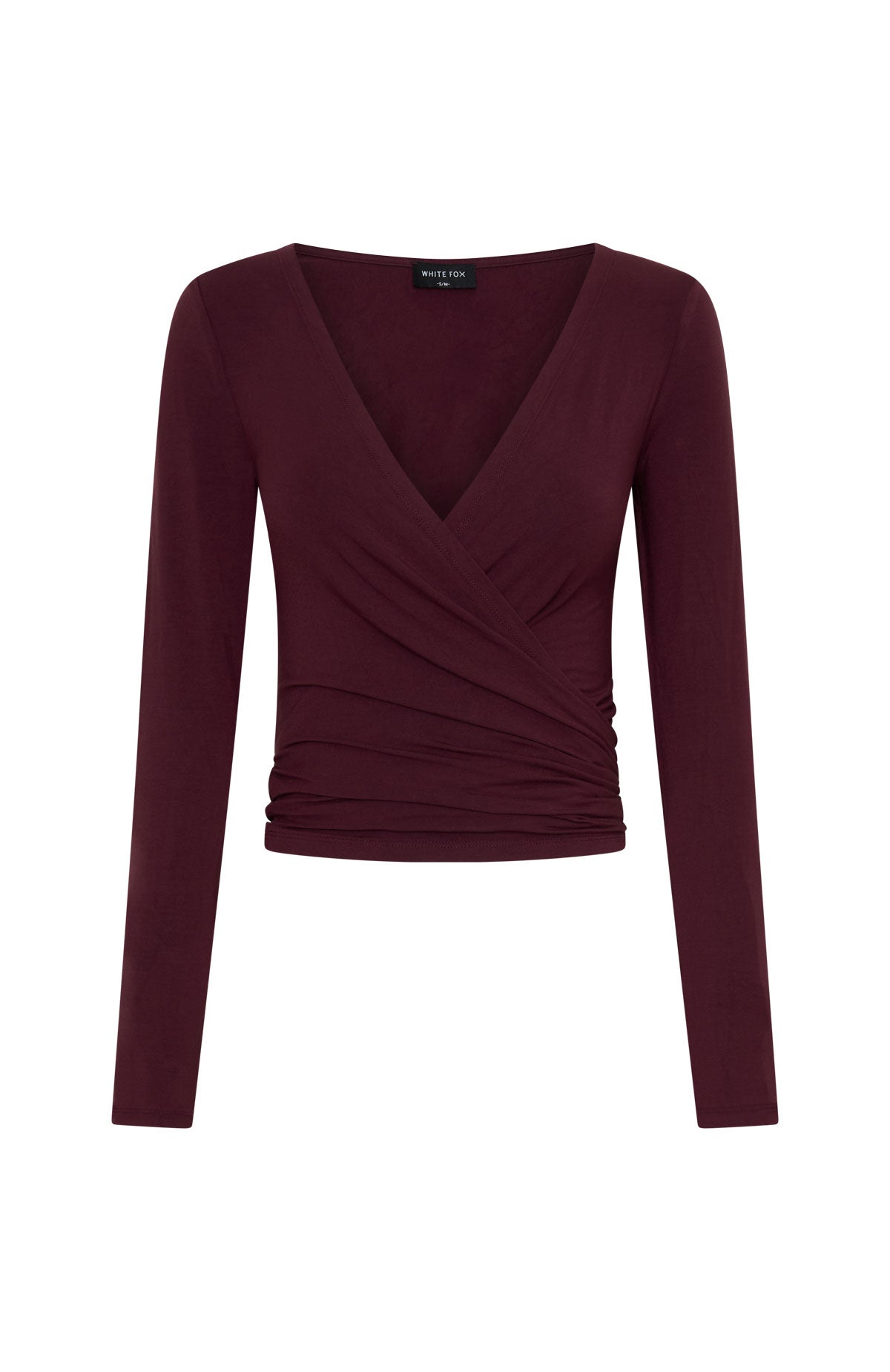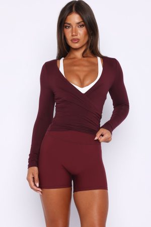 Staying Cute Long Sleeve Wrap Top MerlotStaying Cute Long Sleeve Wrap Top Merlot