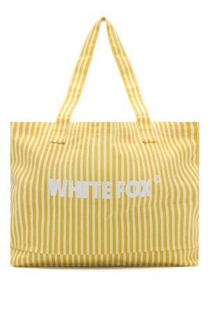 Get beach ready with the Straight Lines Tote Bag in Yellow Stripe. Features thick shoulder straps. light weight material and large sizing perfect for fitting all your bits and bobs. Complete the look with any White Fox bikini for the perfect sun drenched days.
