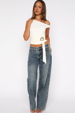 Your new Stuck In A Dream Off Shoulder Top in Bone is waiting for you! Features an off-the-shoulder neckline. a sleek bodice. and a draped sash at the waist adorned with gold hardware detailing. Crafted from high-stretch fabric and fully lined. it offers both comfort and a flattering silhouette. Style with your fav denim jeans and kitten heels for the perfect chic but casual fit.