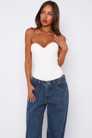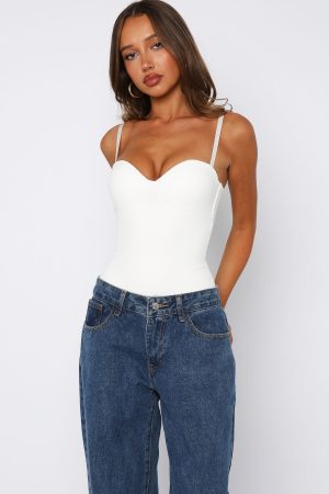 Feel your sexiest in the Stuck To You Bodysuit in Off White! Features adjustable and removable straps. sculpted bust cups. sweetheart neckline. fitted bodice. invisible zipper with hook and eye closure centre back. Pair with your fav White Fox denim jeans. kitten heels and gold accessories for a look we love!