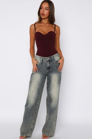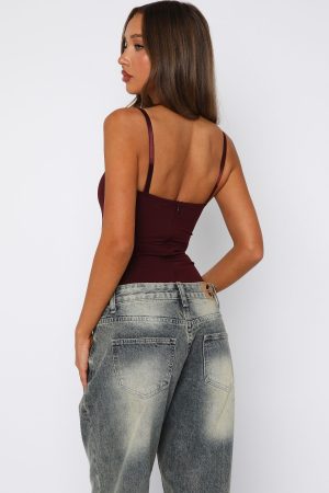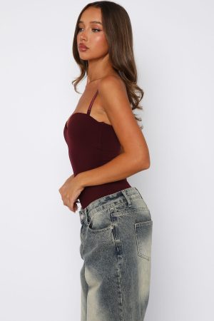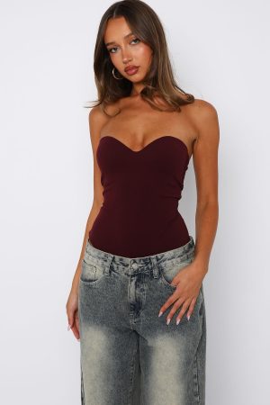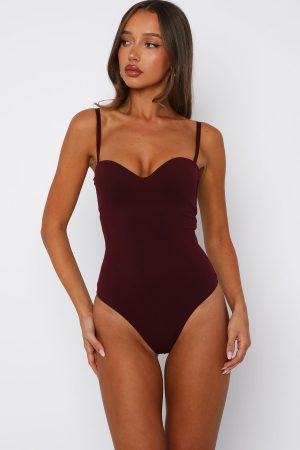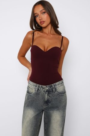 Feel your sexiest in the Stuck To You Bodysuit in Wine! Features adjustable and removable straps. sweetheart neckline. fitted bodice. invisible zipper with hook and eye closure centre back. Pair with your fav White Fox denim jeans. kitten heels and gold accessories for a look we love!