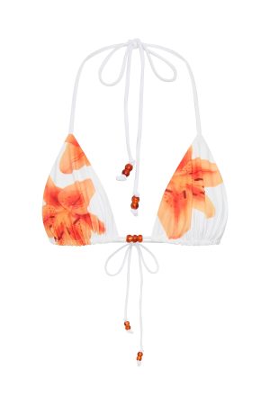 Dive into summer with the Summer Anthem Bikini Top Marigold Twist! Features thin. adjustable shoulder straps that can be worn multiple ways. removable padding. triangle bikini design and beaded detailing. Pairs perfectly with the Sandy Toes Bottoms Marigold Twist!