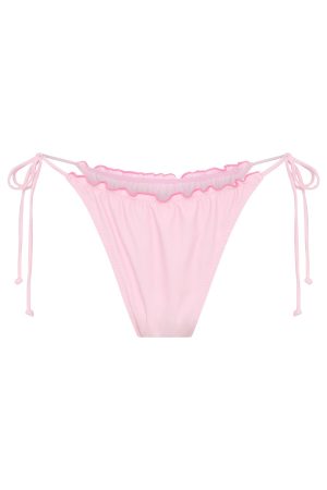 You asked and we answered with the cutest bikini your wardrobe could ask for! The Summer Vibes Bottoms Blossom features a high hip design. lined. cheeky cut design. adjustable side ties. lettuce hem detailing and gold plate at side back. Create a matching moment we adore with any of our Bikini Tops in Blossom!