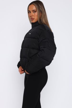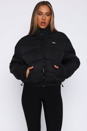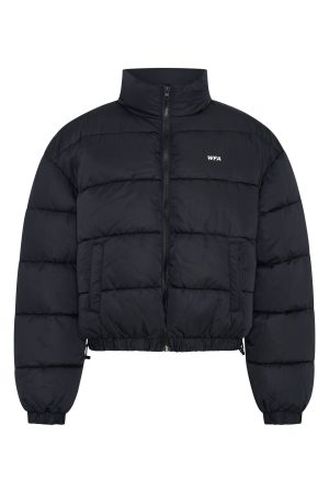 Turn up the heat with the Summit Zip Through Puffer Black. Featuring a functional front zip closure. quilted sleeves and body. stand collar. adjustable drawstring at hemline. front pockets. lined material and WF logo front side. This can be styled with over any of your favourite WFA styles!