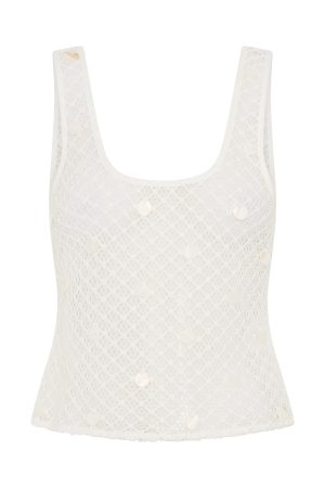 Embrace the sunshine in the Sun Seeker Crochet Top in White! Features thick shoulder straps. scoop neckline and sheer fabrication with shell detailing. Finish the look off with the Forgiven Aura Shell Mini Skirt. strapless bikini top and layered jewellery for a look we love!