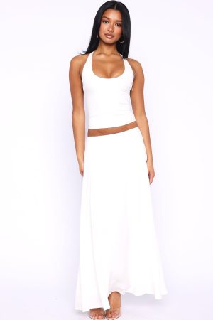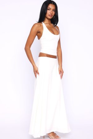 The Sunbliss Maxi Skirt White is made for sunrise-to-sundown styling! Features a structured waistband. a flowing silhouette that sways with every step. a side zipper with secure hook-and-eye closure. and is fully lined for comfortable wear. Style with the matching Sunbliss Halter Top White for the cutest summer look!