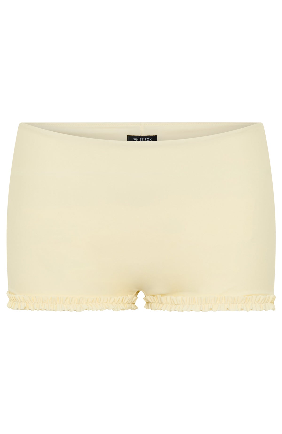 Currently melting in the Sundown Fever Shorts in Butter. featuring a thin elastic waistband. a fitted silhouette that hugs your shape. high‑stretch fabrication and a playful frill hem in a flirty booty length. Style them with the matching Sundown Fever Top for a sun‑soaked summer set that feels as good as it looks.
