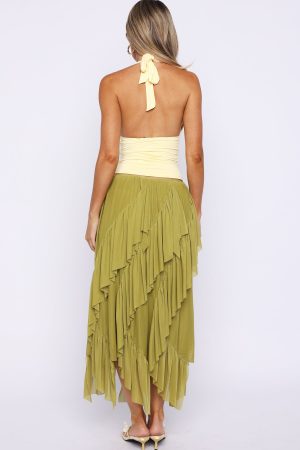 Sunset Strolls Midi Skirt Matcha