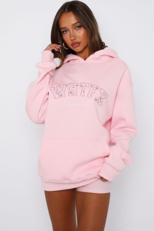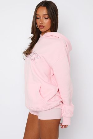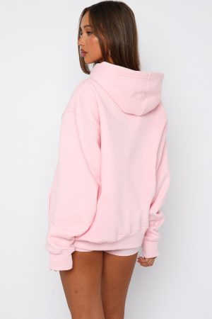 Add the cutest winter warmer to your cart now! The Sweet Sweet Moments Oversized Hoodie in Pink features an oversized fit. hooded design. slouch shoulders. ribbed cuffs and hem. soft fleece fabric for extra comfort. front pocket design. and centre front embroidered logo detailing. Pair with your fav lounge shorts and snug boots for a cosy Sunday fit!