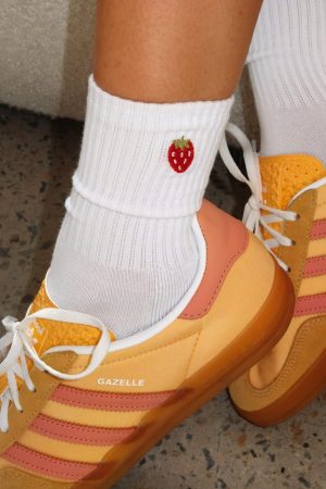 Complete your pyjama set with the Sweetest Berry Socks White! These cushioned crew socks features an embroidered berry detailing and ribbed ankle cuffs and arch band.
