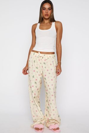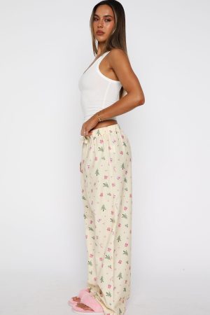 Add a dash of festive cheer to your bedtime routine with the Sweetheart Pyjama Pants in Festive Flicker. Designed with a thick elasticated waistband featuring a self-tie drawstring. these full-length. straight-leg pants offer a comfortable fit. Crafted from unlined. lightweight material. they are finished off with a Christmas inspired design. Pair them with the Sweetheart Pyjama Off Shoulder Tee Lemon.