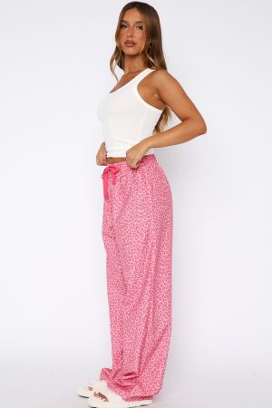 Make your bedtime routine a little sweeter with the Sweetheart Pyjama Pants Pink Leopard! Features a thick elasticated waistband with self tie string. full length. straight leg and unlined. lightweight material. Cosy up and pair with the No Peace Racer Back Pyjama Top!