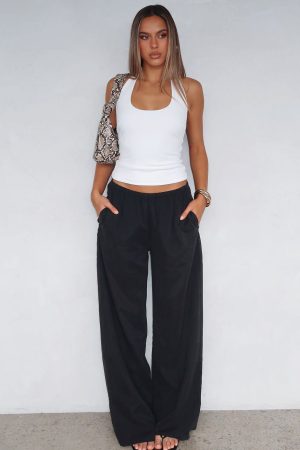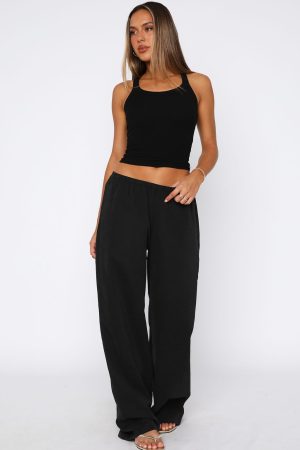 Introducing our latest obsession: understated but elevated! The Take A Stance Pants in Black features a thick. elasticated waistband. two side pockets. full length and light weight material. Style with a basic tank and layered gold accessories for a look we love!