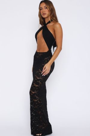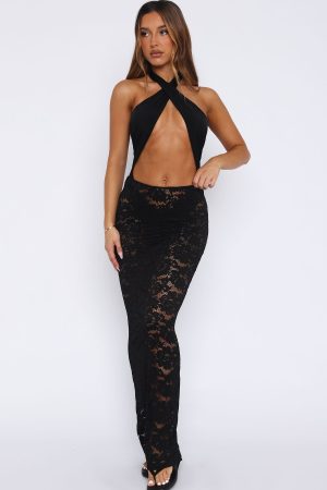 This flirty skirt will be your new day-to-night partner in crime! The Take Time Lace Maxi Skirt Black features a thin. elasticated waistband. unlined. sheer lace material. maxi length. and stretch material for an easy slip on design. Pair with your favourite bikini top by day and swap for something sparkly when the real fun begins!