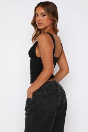 It’s your moment. own it in the Taking Up Space Top Black. Features thick shoulder straps. cropped length. low plunge neckline. lined and soft. stretch material for an easy slip on style. Style with your favourite pair of jeans for a capsule wardrobe staple.