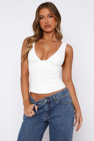It’s your moment. own it in the Taking Up Space Top White. Features thick shoulder straps. cropped length. low plunge neckline. lined and soft. stretch material for an easy slip on style. Style with your favourite pair of jeans for a capsule wardrobe staple.