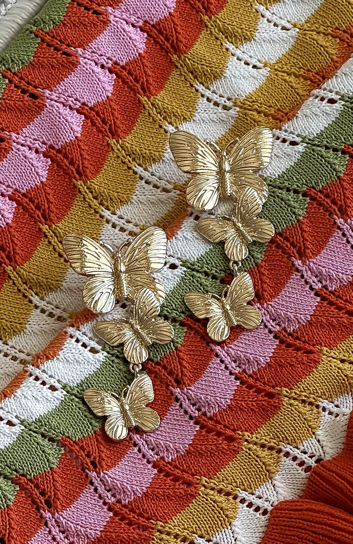 The Talita Earrings scream spring. Feature a whimsical butterfly‑inspired drop design with secure stud closures. Pair them with a matching set and kitten heels for an effortlessly chic spring ensemble that’s full of bright. joyful vibes.