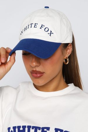 Get sporty in the Talking Over You Cap in White/Blue! Features a structured crown with stitched White Fox text. classic curved brim in Blue. eyelet detailing and snapback closure. We can’t get enough.