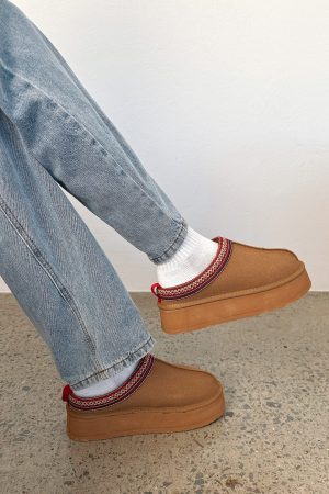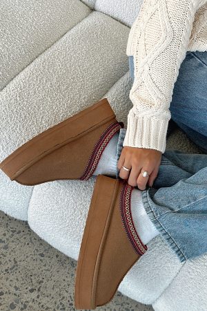 The Tazmin Platform Snug Boots Chestnut are all about home comforts. and our soft and cosy boots will keep you snug. These are the ultimate snug boots to slip into on cold days when you need some extra warmth and comfort. Pair with leg warmers and leggings for trendy look!