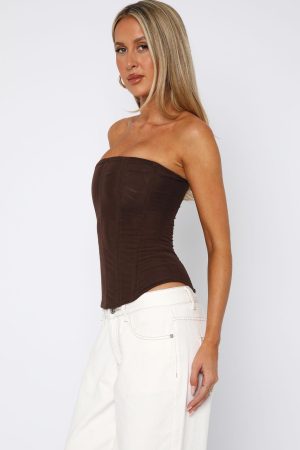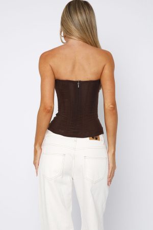 Get ready for the best girls night out with the Tell Me A Secret Strapless Bustier in Chocolate! Features strapless neckline. boning in bodice. invisible back zipper and clasp closure. full length and mesh lined. Complete the look with a mini skirt. kitten heels and gold accessories for a look we love.