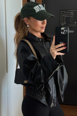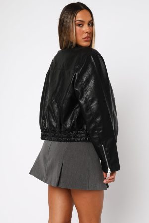Winter is cold. but you don’t have to be. The Tell Me Nothing PU Jacket Black features long sleeves. front zipper closure with popper on neckline. side pockets. zip detail at sleeve and a gorgeous PU fabrication. We love this paired with the matching Tell Me Nothing Mini Skirt for a fresh vibe!