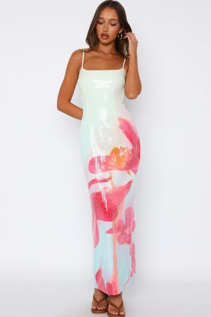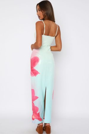 Take centre stage in the Telling Me Lies Maxi Dress Sunset Blossom. Features thin adjustable shoulder straps. hidden back zipper and clasp. stunning sequin embellishments. maxi length. lined and back centre split. We love this styled with kitten heels and your favourite gold accessories.