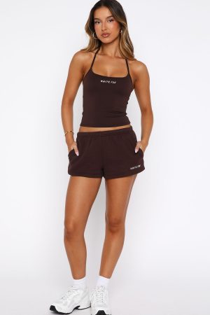 Lounge lovers are going crazy for the Test Drive Lounge Shorts in Chocolate! Designed with a thick elasticated waistband featuring an internal drawstring tie. side pockets. and a relaxed silhouette. The White Fox puff print metallic text at the side adds a signature touch. while the unlined fleece interior ensures a cozy feel. Style with the matching Test Drive Oversized Sweater.