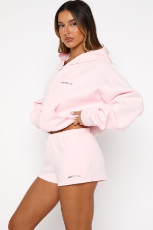 Lounge lovers are going crazy for the Test Drive Lounge Shorts in Icy Pink! Designed with a thick elasticated waistband featuring an internal drawstring tie. side pockets. and a relaxed silhouette. The White Fox puff print metallic text at the side adds a signature touch. while the unlined fleece interior ensures a cozy feel. Style with the matching Test Drive Oversized Sweater or Test Drive Boxy Zip Front Hoodie.